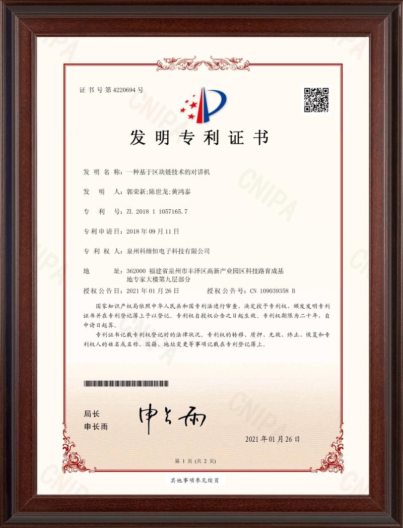 發(fā)明專利(一種基于區(qū)塊鏈技術的對講機)